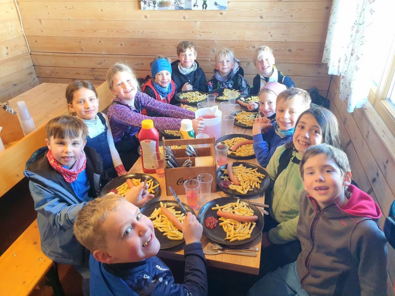 - bei der Skiwelthütte für die „Einkehrschwünge“ bei denen alle Teilnehmer*innen mit Würstel, Pommes und Skiwasser bewirtet wurden