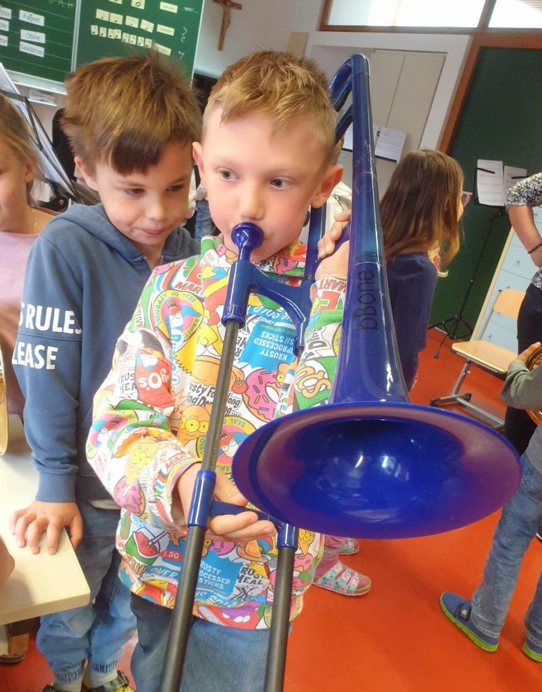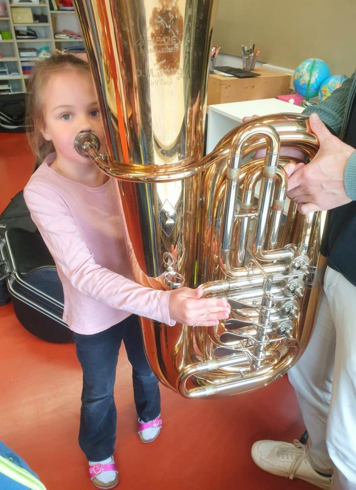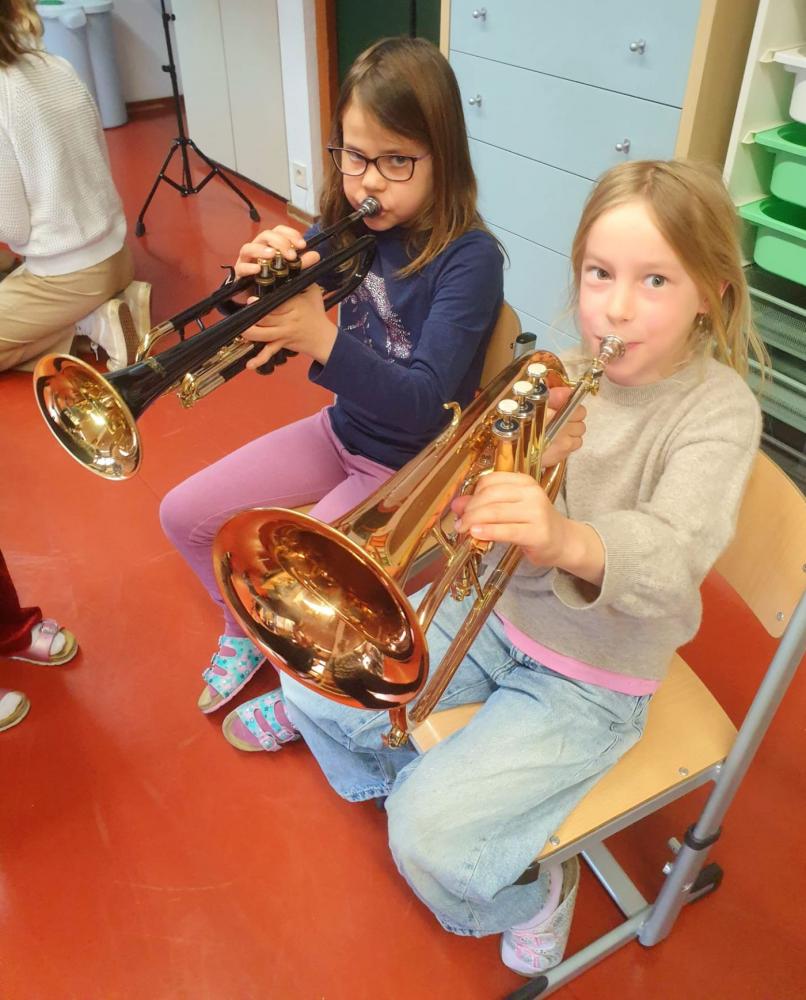 Die Musikanten der Blasmusik-Kapelle Brixen waren bei uns haben uns ihre Instrumente vorgestellt. Danach durften die Kinder selbst ausprobieren und musizieren. Die Kinder fanden es super spannend und das ganze Haus war von schönen Klängen erfüllt. Vielen Dank dafür!